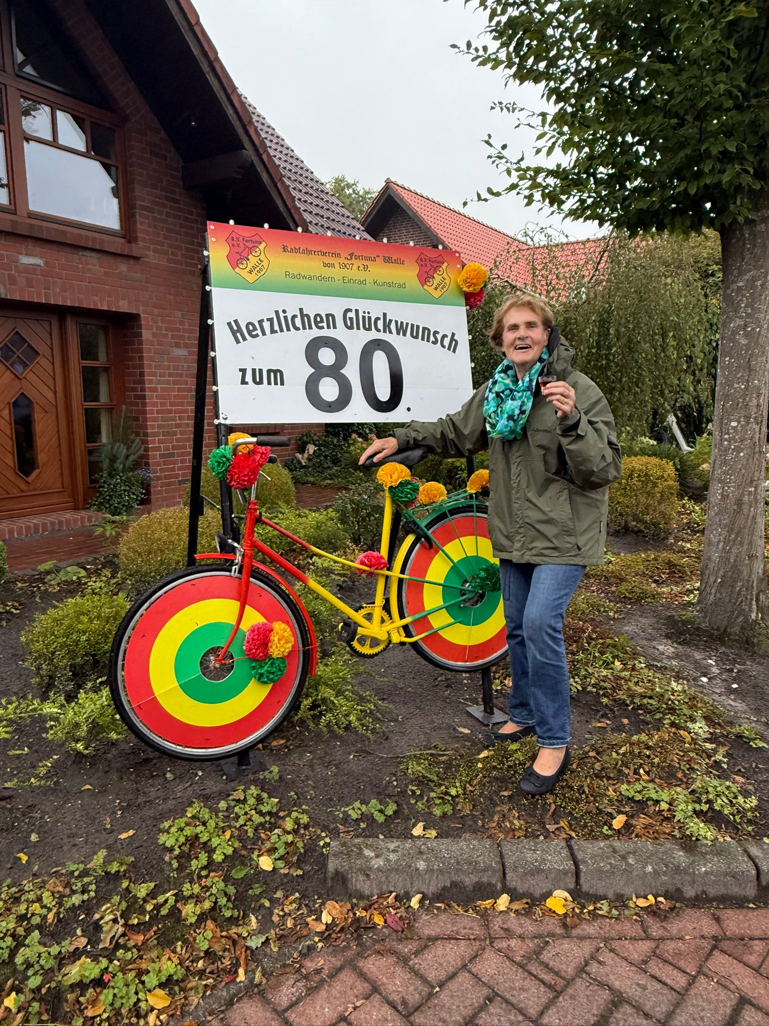 Unsere Vereinsfreundin JOHANNE feiert nun ihren 80. Geburtstag, zu diesem Anlass haben wir den Vorgarten mit unserem "bunten Fortuna-Bogen-Fahrrad" geschmückt.